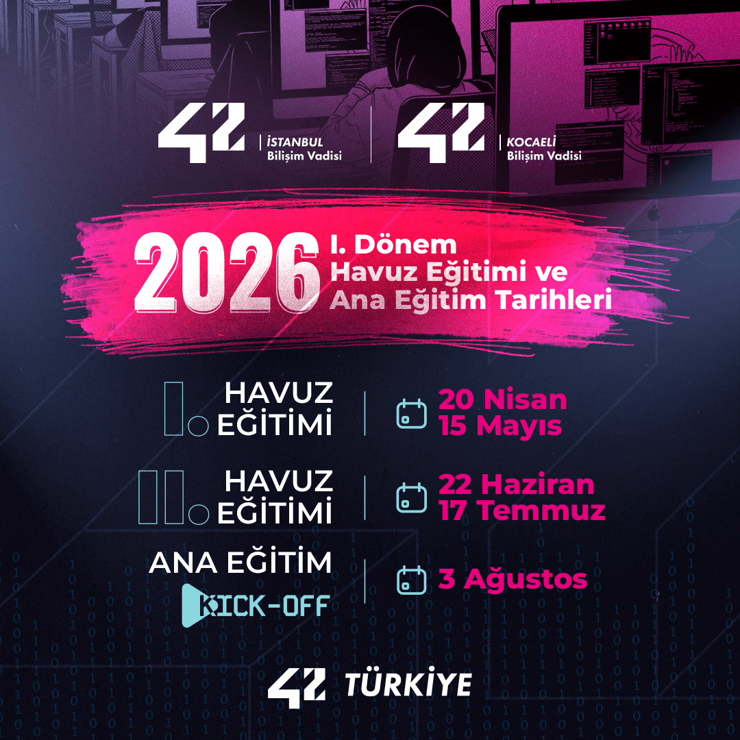 Burada öğrenme, gerçek projelerle güçlenen ve paylaşarak gelişen sürekli bir yolculuktur. 42 Türkiye’de öğrenmek yalnızca kod yazmak değil, düşünmek, üretmek ve sorumluluk üstlenmektir.